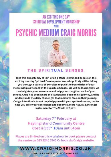 A one day mediumship workshop with Psychic Medium Craig Morris