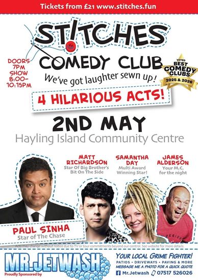 In support is Matt Richardson, star of Celebrity Juice and Big Brother’s Bit On The Side, with Samantha Day too, a multi award winning comedian and star of Instagram, and all hosted by James Alderson!